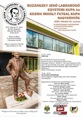 Február 21-én 14 órától 20 óráig rendezik meg Debrecenben az Egyetem téri Sportcsarnok Sportcampuson a fő eseményt, a Buzánszky Jenő Labdarúgó Egyetemi Kupa Nagydöntőt és a sportág korábbi sikeres (a Kispest és a magyar válogatott egykori legendás csatárával csak névrokonságban álló) szakvezetőjének nevét viselő Kozma Mihály Futsal Kupa döntőit. A szervezők minden érdeklődőt szeretettel várnak.
