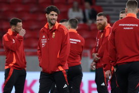 Szoboszlai Dominik (b2) a labdarúgó Nemzetek Ligája A divíziójának 3. csoportjában játszott Magyarország – Hollandia mérkőzés előtt a Puskás Arénában 2024. október 11-én