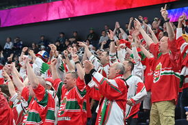 Magyar szurkolók a jégkorong-világbajnokság második fordulójában játszott Egyesült Államok – Magyarország mérkõzésen a finnországi Tamperében 2023. május 14-én.