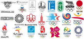Mexikó és München emblémája a 60-as, 70-es évek pop-art stílusában készült, mindkettő modern és egyszerű, utóbbi esetében azonban kissé túlzásba estek a puritánság hívei. A grafika minden bizonnyal már a kollektív bűntudat nyomása alatt készült: míg a legtöbb olimpiai logóról sugárzik a hazafias büszkeség, addig ez inkább a globális egységet hangsúlyozza, ráadásul cseppet sem utal arra, milyen eseményt hivatott képviselni. Igaz, A 76-os montreali szimbólum sem a túláradó hazaszeretet jelképe, ám tagadhatatlanul ötletes: egyszerre jelenik meg benne egy futópálya, egy dobogó és az öt karika.
