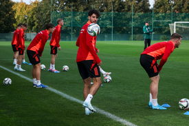 Szoboszlai Dominik (k) a magyar labdarúgó-válogatott edzésén a telki edzõközpontban 2024. október 13-án.