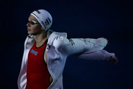 Kapás Boglárka a nõi 400 méteres vegyesúszás döntõje elõtt a dohai vizes világbajnokságon 2024. február 18-án.