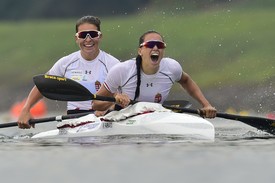 A szombat délelőtti programot a két K-2 1000 méteres döntő zárta, ezek közül a női magyar sikert hozott, mégpedig nem is akármilyet. Farkasdi Ramóna és a két napja még betegséggel küzdő Medveczky Erika kettőse nagyszerűen versenyzett, már 500-nál az élen lapátolt, és bár a kazahok a táv második felében megpróbáltak felzárkózni rájuk, nem jártak sikerrel. Farkasdi, aki az Eb-n is megnyerte ezt a számot másik párral, és Medveczky, aki korábban háromszor volt vb-bronzérmes, egyre csak növelte előnyét, a célba már elképesztő, több mint három hajóhossz különbséggel érkezett be.