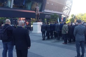 Szöllősi György, a Nemzeti Sport főszerkesztője, a magyar futball és a Puskás-ügyek nagykövete a labdarúgás megkoronázott királyának nevezte Kocsist, akit fejjátékban a világ egyik legjobbjának tartanak, és egy nemzedék rajongott érte. Emlékeztetett arra, hogy „Kocka” a Barcelonával 1961-ben ugyanabban a berni stadionban veszítette el a BEK-döntőt, ahol korábban a magyar válogatottal a vb-finálét bukta el. Végül arról beszélt, hogy Kocsis most hazatért és méltó helyen, Albert Flórián szobra mellett kapott helyet a Groupama Aréna előtt.