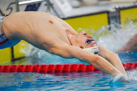 Kós Hubert a férfi 100 méteres hátúszás döntõjében az úszók 127. országos bajnokságán a kaposvári Csik Ferenc Versenyuszodában 2025. április 10-én.