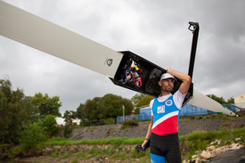 – Egy új-zélandi hajóval, ami egyébként egy ott élő magyar házaspár gyárában készült. Különlegessége, hogy egy nemzeti színű sasmadár díszíti, ami nagy szó, mert az evezés konzervatív sport, szigorú szabályok írják elő, hogy milyen matricák kerülhetnek a sporteszközökre. Sem vallási, sem politikai jelképek nem engedélyezettek, és bújtatott reklám sem szerepelhet rajtuk. Sok időbe telt, míg bebizonyítottuk, hogy ez a rajz egyik kategóriába sem tartozik. Még az is szóba került, hogy lecsiszoljuk, de végül sikerült kiharcolni, hogy maradhasson.