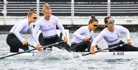 A női kenu négyeseknek nem rendeztek előfutamokat, mivel összesen kilenc hajó nevezett, így a Kiss Ágnes, Nagy Bianka, Opavszky Réka, Csorba Zsófia összeállítású magyar egységnek is csak a döntőben kellett vízre szállnia először. A magyarok – a szintén kedvező 8-as pályán – sokáig a címvédő kínaiakkal voltak nagy csatában, mögöttük másodikként értek féltávhoz, de aztán ritmust váltottak, faképnél hagyták a teljes mezőnyt és fölényes győzelmet arattak. Ebben a szakágban ez mindössze a második magyar világbajnoki cím Lakatos Zsanett és Takács Kincső 2014-es páros győzelme után.