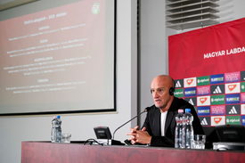 Marco Rossi szövetségi kapitány az októberben sorra kerülő, örmények és portugálok elleni világbajnoki selejtezőkre készülő magyar labdarúgó-válogatott keretének kihirdetésén a telki edzőközpontban 2025. szeptember 30-án