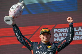A győztes Max Verstappen, a Red Bull holland versenyzője a Forma-1-es Magyar Nagydíj eredményhirdetésén a mogyoródi Hungaroringen 2023. július 23-án