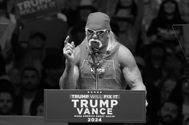 2024. október 27-én a Republikánus Párt kampánygyűlésén a New York-i Madison Square Gardenben készített kép Hulk Hogan volt amerikai hivatásos pankrátorról, színészről