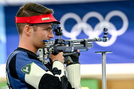 Péni István a férfi légpuska alapversenyében a 2024-es párizsi nyári olimpián a Chateauroux-i lõtéren 2024. július 28-án.