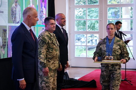 A XXXIII. nyári olimpiai játékokon részt vevő katona sportolókat köszöntötte Szalay-Bobrovniczky Kristóf honvédelmi miniszter és Böröndi Gábor vezérezredes, a Honvéd Vezérkar főnöke szerdán Budapesten, a Honvédelmi Minisztériumban megtartott ünnepségen.
