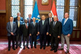Orbán Viktor miniszterelnök pénteken az Országházban látta vendégül a FINA vezetőit.Orbán Viktor miniszterelnök pénteken az Országházban látta vendégül a Nemzetközi Úszószövetség (FINA) vezetőit, Julio C. Maglione elnököt és Cornel Marculescu ügyvezető igazgatót, valamint az alelnököket abból az alkalomból, hogy a szervezet április 26. és 28. között Budapesten tartja vízilabda világkonferenciáját – tájékoztatta az MTI-t Havasi Bertalan, a miniszterelnök sajtófőnöke.