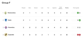 A magyar bajnoknak így megszakadt a tíz tétmérkőzésen át tartó győzelmi sorozata, de a veretlensége tovább folytatódott. A Ferencváros a három hét múlva sorra kerülő harmadik körben az ugyancsak négypontos, de kevesebb szerzett gólja miatt csoportmásodik belga Genk vendége lesz.
