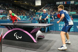 A címvédő Pálos Péter megnyerte negyeddöntőjét, így már biztosan érmet szerez az asztaliteniszezők MS11-es kategóriájában a párizsi paralimpián.