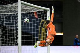 Pécsi Ármin, a Puskás Akadémia kapusa a labdarúgó OTP Bank Liga 33. fordulójában játszott Puskás Akadémia FC – Diósgyőri VTK mérkőzésen a felcsúti Pancho Arénában 2025. május 24-én