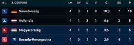 A nemzeti együttes sikerével megerősítette az osztályozót érő harmadik helyét a csoportjában, továbbá pontszámban utolérte a negyeddöntőt érő második helyet pillanatnyilag elfoglaló hollandokat.