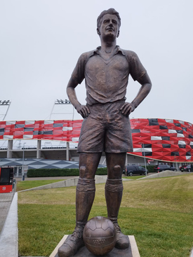 Múlt pénteken volt száz éve, hogy megszületett Bozsik József, a Kispest és az Aranycsapat legendája, pályája csúcsán a világ legjobb jobbfedezete. Tiszteletére kedden reggel felavatták egész alakos szobrát a nevét viselő kispesti stadion előtt.