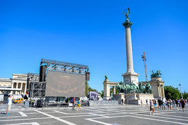 Németh Balázs hétfői, Hősök terén tartott sajtótájékoztatóján közölte, a vb 49 versenyszámából hatnak, a férfi és női maratonfutásnak, illetve a férfi és női 20 és 35 kilométeres gyaloglásnak lesz a rajt- és célterülete a Hősök terén, ahol már állnak a lelátók, és két óriáskivetítő is működik.
