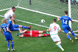 A második találkozón a védekezésben specialista, a portugálokkal bravúros döntetlent elérő Izland ellen léptünk pályára. Sejteni lehetett, hogy itt végig dominálnunk kell, s ez sikerült is, hiszen összességében véve közel hetven százalékban birtokoltuk a labdát. Szabad szemmel is jól látható fölényünk ellenére a szünetben mégis az izlandiak vezettek, miután az ellenféllel – fogalmazzunk így – szimpatizáló orosz játékvezető a 40. percben befújt egy tizenegyest, Gylfi Sigurdsson pedig értékesítette azt.