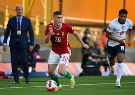16. perc: Szoboszlai végezhetett el szabadrúgást a bal oldalról, a kapu elé ívelt labdáját az egyik angol védő rossz helyre, Sallai elé fejelte (Kane sem tudott menteni), a magyar támadó nem tétovázott, hat méterről tüzelt, a labda pedig Ramsdale karján megpattanva kötött ki a hálóban (0-1).