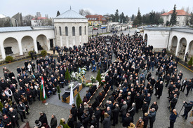 Szabó Tünde az elhunytról beszélve kiemelte: példaértékű embersége mindig megmutatkozott, önzetlenül élt. Felidézte, hogy amikor a januári Év sportolója díjátadó gálán a Magyar Olimpiai Bizottság (MOB) és Magyar Sportújságírók Szövetsége közös életműdíját átvette és a közönség percekig állva tapsolta, ő akkor is a tokiói ötkarikás játékokra készülőkre gondolt, kitartást, erőt, szerencsét és hazafiságot kívánt utódainak.
