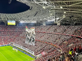 Telt ház és egészen fantasztikus hangulat fogadta a csapatokat a Puskás Arénában, a magyar szurkolók Molnár Ferenc leghíresebb művét, A Pál utcai fiúk című regényt idéző élőképpel és a „Legyen újra miénk a grund!” felirattal fogadták a kedvenceiket.