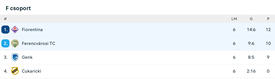 A Ferencváros második helyen továbbjutott a labdarúgó Konferencia-liga F csoportjából, mivel csütörtökön 1-1-es döntetlent játszott itthon az előző kiírás olasz döntősével, az első helyezettként rögtön a nyolcaddöntőbe lépő Fiorentinával.