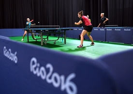 Lovas hozzátette, egyelőre ismerkednek a „steril” környezettel, a szokatlan a türkizkék színű asztal és a zöld padló kombinációjával, amely az olimpiára felváltotta a bevált sötétkék-piros színösszetételt.