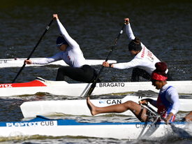 A leghosszabb távon a kenusoknál a szombaton 1000 méteren bronzérmes Adolf Balázs ugyanúgy Sebastian Brendellel vívott nagy csatát a győzelemért, mint két éve, Szegeden, de most más lett a csata végkimenetele. A német címvédő és a 22 éves magyar versenyző felváltva vezetett, majd az utolsó fordulónál Adolf becsúszott Brendel elé és mindketten megkezdték a hajrát. Az utolsó méterekig fej fej mellett haladtak, de a végén az Óbudai Ganz VSE kenusa hajójának orra ért előbb a célba, így ezúttal ő lett a világbajnok.