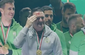 Az ír vezetőedző a történelmi, sorozatban hetedik bajnoki cím szombati elhódítása után, a kupaemelés közben megsérült, de a Fradi honlapjának elmondta, ez nem befolyásolta az ünneplést.