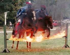 Minden állat ösztönösen és joggal retteg a vörös kakastól, irtózik a mindent felperzselni vagy megolvasztani képes gyilkos lángcsóváktól. Egyedül az ember tanulta meg kezelni és a maga számára hasznosítani a tüzet, és csak akkor éri baj, ha az kikerül az ellenőrzése alól. Az állatok viszont – így a lovak is – ugyanúgy vannak vele, mint az ősidőkben: ha látják az izzó, lobogó nyalábokat, és túl közel érzik magukhoz a mardosó forróságot, jobb híján menekülőre fogják. Ha rajtuk múlna, ilyenkor a világból is kiszaladnának. Ezért aztán tiszteletteljes csodálattal tölt el, amikor fortéllyal, neveléssel, de legelsősorban a lovas iránti osztatlan bizalom megteremtésével sikerül rávenni négylábú társainkat a tűzugrásra, rábírni őket a halálfélelem leküzdésére. Amikor a tűzakadályt a lángok karéja öleli át, serceg, vibrál a felhevült levegő, és haragosan vöröslik a rúd, akkor ugrik, suhan át fölötte ló és lovasa, és akkor legszebb a lángok lovagja.