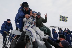 Simán földet ért a Szojuz MSZ-09 űrhajó leszállóegysége három űrhajóssal a fedélzetén.Simán földet ért csütörtök hajnalban Zsezkazgan közép-kazahsztáni várostól 147 kilométerre délkeletre a Szojuz MSZ-09 űrhajó leszállóegysége, fedélzetén a Nemzetközi Űrállomás (ISS) legénységének három tagjával, az űrhajó orbitális kabinján keletkezett hajszálrepedés felszínéről vett mintákat tartalmazó tartályokkal együtt – tájékoztatták csütörtökön az újságírókat a Moszkva melletti repülésirányító központban (CUP).