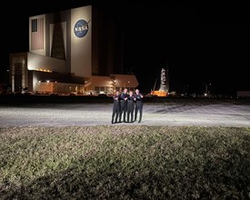 A felvételen a négy űrhajósból – Peggy Whitson, amerikai űrhajósnő, parancsnok, az indiai Shubhanshu Shukla, a lengyel Sławosz Uznański, és akiért a legjobban izgulunk, a magyar Kapu Tibor – álló legénység a a floridai Kennedy Űrközpontban int búcsút az útjukat a Földről követő millióknak.