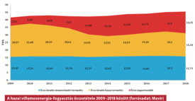 Tavaly a magyar villamosenergia-fogyasztók soha nem látott mennyiségű, bruttó 45,42 TWh villamos energiát használtak fel, amely érték 0,8 százalékkal volt magasabb, mint az előző, 2017. évi összesített magyar fogyasztás. A valós fogyasztásnövekedés még nagyobb lehetett, hiszen hazánkban a beépített napelemes háztartási termelőegységek teljesítőképessége már 2018 végére elérhette a 300 MW-ot, de ez közvetlenül nem jelenik meg a rendszer­adatok között.