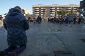 A plébánia sportpályáján tartott vasárnapi mise Rómában 2020. március 8-án.