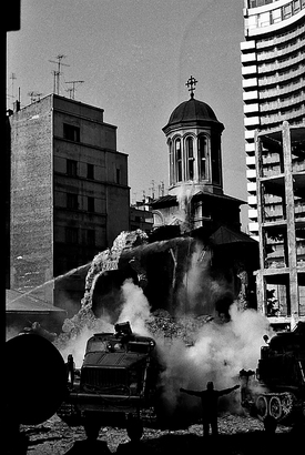Bukarest, az Enei-templom 1977-ben a földrengés után