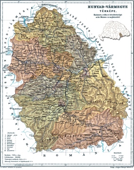 Hazánk egyik leghegyesebb vármegyéje volt a Maros két partján, közel hétezer négyzetkilométer területen. Lakóinak száma 1891-ben kétszázhetvenezer lélek volt, így Hunyad az ország legritkábban lakott megyéi közé tartozott. A lakosok közel kilencven százaléka volt román, hat százaléka magyar, a többi német, szerb és egyéb nemzetiségű. A vármegye négyszázhuszonnyolc településéből csupán huszonhétben élt száznál több magyar. A vármegyében volt négy rendezett tanácsú város, hat nagy és négyszázhuszonkét kisközség, továbbá negyvenhét puszta. A községek túlnyomó része kicsi volt, kétezren felül csak tizenegyben laktak, de ezek közül is a brádi és kőrösbányai járásokba tartozók annyira szét voltak a havasokon szórva, hogy a községi élet előnyeiben lakosságukat nem részesíthették. Legnépesebb volt Szászváros ötezerhatszáz és Déva négyezerhétszáz lakossal, utóbbi a vármegye székhelye.
