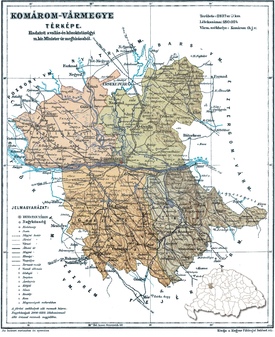 A Duna mindkét partján elterülő megye volt, területe közel háromezer négyzetkilométer, lakóinak száma 1891-ben kereken százhatvanezer fő, (továbbá ötezer katona, nagyobbára Komárom városában). A lakosok nyolcvanhat százaléka volt magyar, hét százaléka német, öt százaléka szlovák, a többi egyéb nemzetiségű. Hitfelekezet szerint százezer volt római katolikus, negyvenhatezer református, hétezerötszáz izraelita, ötezer evangélikus, a többi egyéb vallású.