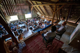 Az udvar közéleti témáit délutánonként a Lechner Tudásközpont által felkért előadók és kérdéskörök tarkították. Torockó a már említett muzeális jellegével kiváló díszlete volt a Kárpát-medence épített környezetének megóvását, annak nehézségeit, szépségeit illető kerekasztal-beszélgetésnek. A Kulturális örökségvédelmi jó gyakorlatok és fejlesztések: a nép építészettől az erdélyi kastélyokig című vitakör résztvevői a legkülönbözőbb területekről érkeztek, ezáltal szavatolva, hogy valódi, akár a konfrontációt sem mellőző eszmecsere jöjjön létre. Dr. Bali János, az ELTE BTK Néprajzi Intézetének egyetemi adjunktusa, a Nemzetstratégiai Kutatóintézet kutatási és stratégiai igazgatója, Korzenszky Tamás, a Lechner Tudásközpont kulturális örökségvédelmi igazgatója, dr. Pozsonyi Ferenc akadémikus, a BBTE BTK Magyar Néprajz és Antropológia Intézet professzora, dr. Szele Tamás kamarai jogtanácsos, a Miniszterelnökség társaságfelügyeleti főosztályvezetője, valamint a moderátor, dr. Molnár Gergely, a Lechner Tudásközpont világörökségi szakmai munkatársa mellett részt vett a szimpóziumon Bánffy Farkas is, aki számos erdélyi kastély magyar tulajdonba való visszaszerzőjeként, felújítójaként igazi színt tudott vinni a disputába.