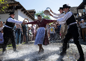 A tömeg fölfelé és lefelé is hömpölyög: akik már belekóstolhattak a magyar vidék húsvéti hagyományaiba és az ilyenkor szokásos hamisítatlan ünnepi hangulatba, azok hazaszeretettel feltöltődve, örömtől kipirult arccal indulnak hazafelé, akik pedig még csak most szeretnének megmerítkezni e különleges élményben, a központ felé veszik az irányt. A jellegzetes, zsindelytetős, tornácos parasztházak portáin kürtőskalács, lepény és igazi palóc finomságok, máshol kézműves termékek, népi játékok vagy az ősi magyar mesterségek képviselői várják bemutatóikkal a vendégeket, hogy elmerülhessenek nemzeti sajátosságaink világában, s magunkba szívják mindazt, ami identitásunk, értékrendünk alapját képezi. Sétánkat muszáj megszakítanunk, mert a macskaköves, szűk utcácskák egyikén egyszer csak utunkat állja egy csapat locsolkodni készülő legény. Meghatottságtól könnyes szemmel nézzük végig, ahogy sugárzó jókedvvel népdalokat énekelnek és közben megpörgetik a népviseletbe öltözött, gyönyörű helybéli leányokat, akik aztán őszinte mosollyal és természetességgel állnak sorba, hogy a kereszténység legnagyobb ünnepének másnapján, régi szokás szerint megöntözzék őket egy vödör friss vízzel. Miközben a jelenetet figyelem, azon morfondírozom: vajon lesznek-e még ilyen, a szokásainkat féltve őrző magyarok, amikor a gyerekem annyi idős lesz, mint ezek a gyökereikre, családi és nemzeti múltjukra büszke fiatalok?