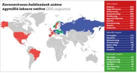 Annak érdekében, hogy lássuk, a nyár legszebb napjaiban milyen a helyzet szűkebb és tágabb környezetünkben és a világban, készítettünk önöknek egy kimutatást arról, hogy néhány országban egymillió lakosra eddig hány koronavírusos haláleset jutott. Nem az összes országot vizsgáltuk meg, csak amik nekünk érdekesek. Három csoportra osztottuk őket. Az első csoport az, ahol tényleg nagy baj van, és még nagyobb lehet. A második, ahol szintén nagy baj van, de talán meg tudják fogni a dolgot. A harmadik pedig, ahol tulajdonképpen nincs nagy baj, mert minden valószínűség szerint nemcsak szerencséjük volt, de vigyáztak is, és most azon kell dolgozniuk, hogy ne is legyen.