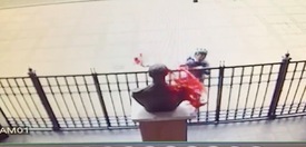 Aztán a dobozt is eldobja, de az már nem talál, Horthy Miklós mellszobrát tehát nem tudta fejbe dobni pár méterről sem, viszont vörös festéktől csöpög, szóval, eredményesen zárult az akció.