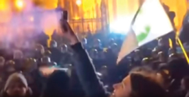 Fekete-Győr András füstbombát dob a rendőrökre, alelnöke, Donáth Anna meggyújt egy másikat.