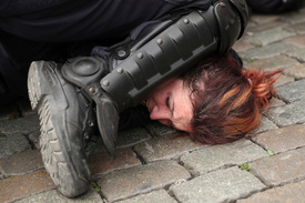 Ilse Van de Keere rendőrségi szóvivő arról számolt be a Le Soir című napilap cikke szerint, hogy a társadalmi igazságtalanság elleni tiltakozáson többen kövekkel kezdték dobálni a rendfenntartókat, illetve a környező épületeket és utcabútorokat.