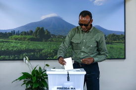 A szavazatok hétfő esti, 79 százalékos feldolgozottságnál Kagame 99,18 százalékon állt, míg két ellenfele közül Frank Habineza, az ellenzéki Zöld Demokrata Párt (DGPR) jelöltje 0,5, a függetlenként indult Philippe Mpayimana pedig 0,32 százalékot mondhatott magáénak.