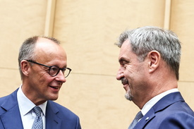 Friedrich Merz német kancellár (b) és Markus Söder bajor tartományi miniszterelnök