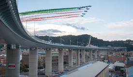 A hatvanas években emelt, építészéről Morandinak elnevezett híd omlását az eddigi vizsgálatok szerint a hiányos karbantartás okozta. Az ügyészség többek között a hidat üzemeltető autósztráda társaság ellen emelt vádat, de az új hídra is ugyanez a társaság kapott koncessziót. A rokonok többek között ezért nem vettek részt az avatási ünnepségen.