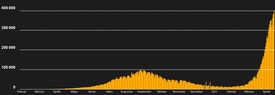Napi megbetegedések száma Indiában (2021. április 30-án egy nap alatt 401 993 fő lett fertőzött)