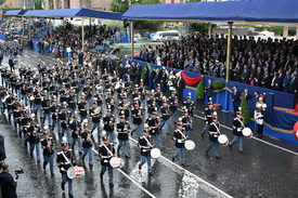 Katonazenekar tagjai vonulnak az Olasz Köztársaság kikiáltásának 78. évfordulóján tartott katonai parádén, Rómában 2024. június 2-án.